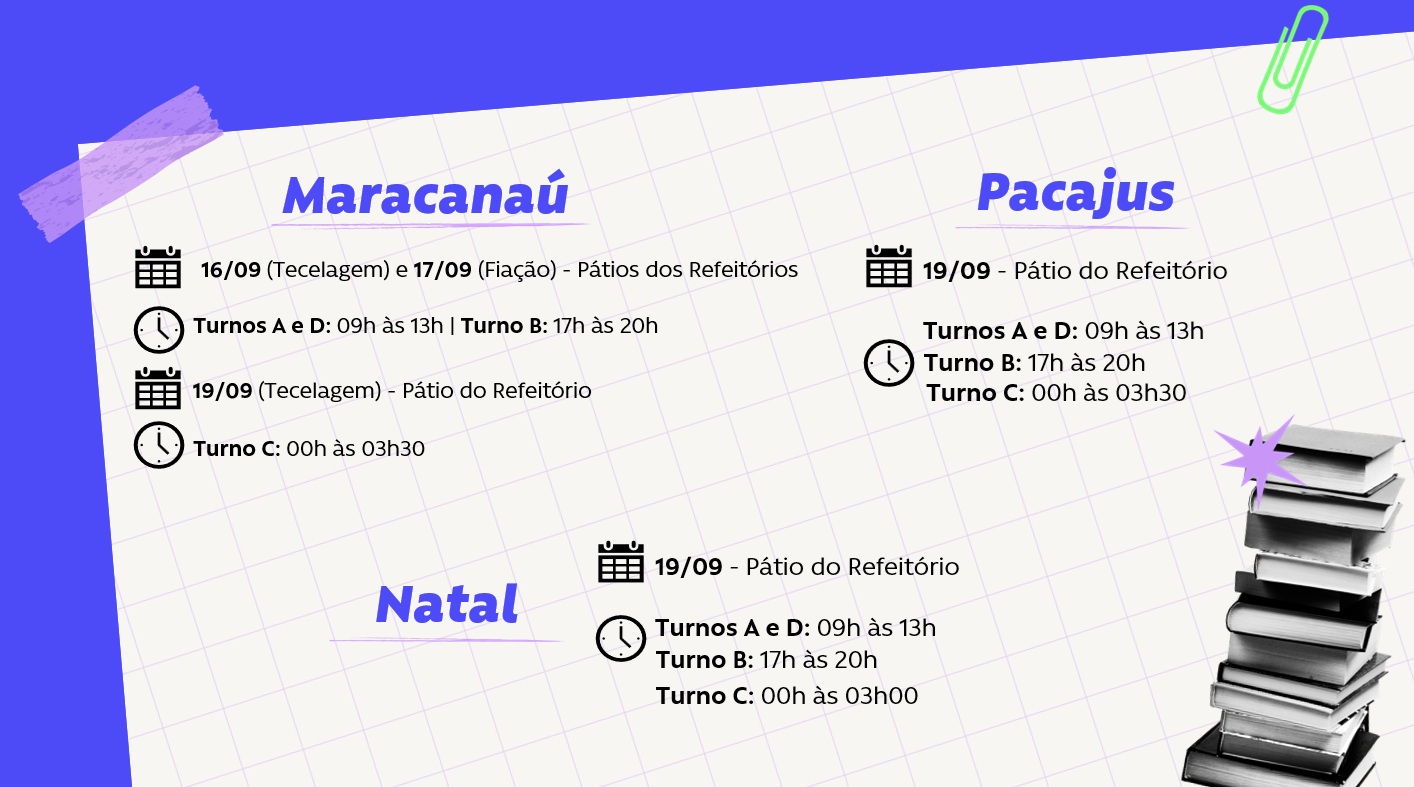 Teremos evento também no Turno C em Natal. Atualizamos a matéria com os horários.