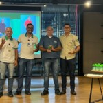 Durante a cerimônia oficial de encerramento, homenageamos os cipeiros que foram destaques durante o ano: Helton Costa, Antônio de Pádua, Pedro Bernardino, do setor de Acabamento e Glerysson Menezes, do setor de Fiação.