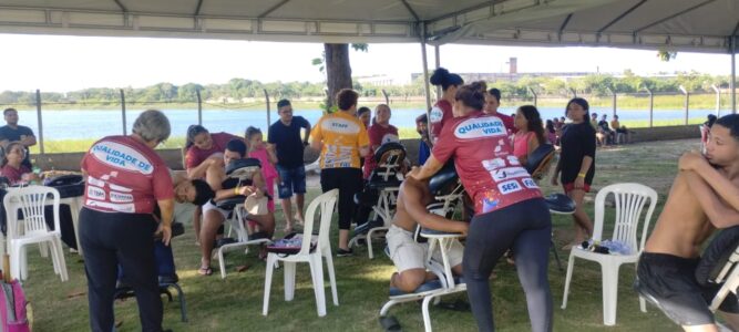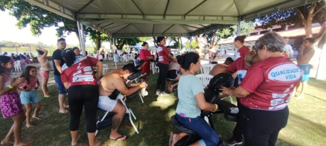 Os participantes puderam desfrutar de massagens relaxantes, ventosaterapia, corte de cabelo, vacinação, avaliação da saúde, aulas de ritmos e várias outras ações que trouxeram momentos de alegria, cuidado e união. Para refrescar e divertir, a piscina foi liberada para todos que participaram do evento, garantindo risadas e bons mergulhos. Além disso, a distribuição de lanches deliciosos manteve a energia lá em cima durante todo o evento.