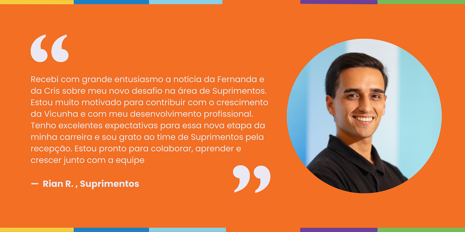 Mudanças de área trazem novas perspectivas, desafios e oportunidades de crescimento. Rian, que acaba de assumir um novo papel na área de Suprimentos, compartilha como recebeu essa novidade e o entusiasmo com o que vem pela frente.
