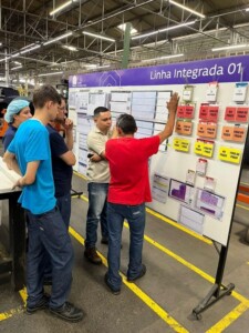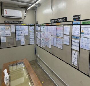 Hoje, já temos como crescente ferramenta em nossa empresa, principalmente nas áreas industriais, a organização dos nossos indicadores nas nossas salas e quadros de Gestão da Rotina, o nosso GEROT: espaços onde os nossos indicadores são dispostos em Gestão à Vista, de forma organizada por níveis de responsabilidade. Realizamos reuniões periódicas para acompanhamento e discussão de oportunidades de melhoria para os resultados.