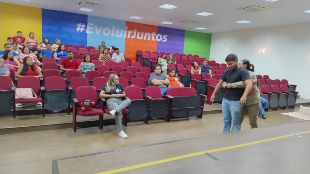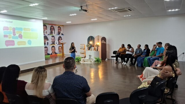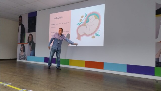 Após um café da manhã reforçado, promovemos uma roda de apresentação, onde os participantes puderam compartilhar suas vivências e expectativas — com destaque para os pais de primeira viagem, que trouxeram relatos emocionantes. Em seguida, uma nutricionista abordou a importância da alimentação equilibrada durante a gestação, esclarecendo dúvidas e dando dicas práticas para o dia a dia.