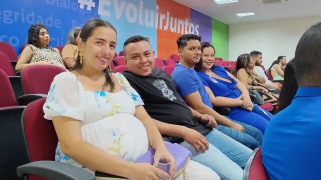 No encontro, mamães e papais participaram de atividades especialmente pensadas para compreender melhor o processo da gestação e os cuidados essenciais com a mãe e o bebê.