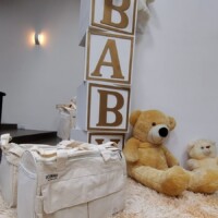Outro lindo detalhe foi o espaço decorativo onde os pais puderam tirar suas fotos juntinhos, eternizando esse momento tão especial da preparação para a chegada de um novo membro da família, para guardar de recordação e postar nas redes sociais.