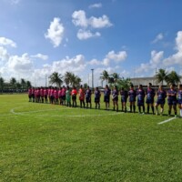 Com a bola rolando, as Águias (roxo) tiveram maior posse e aproveitaram um contra-ataque para abrir o placar. Após sofrer o primeiro gol, as Panteras (rosa) entraram no jogo e aumentaram a ofensividade, melhorando a troca de passes e o domínio da bola.
