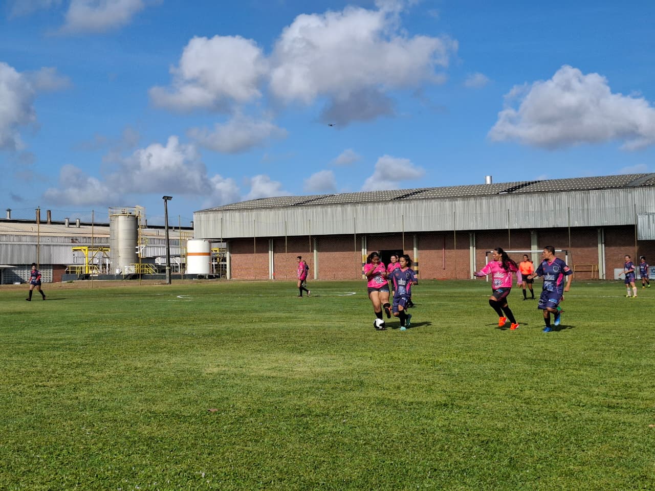 Com a bola rolando, as Águias (roxo) tiveram maior posse e aproveitaram um contra-ataque para abrir o placar. Após sofrer o primeiro gol, as Panteras (rosa) entraram no jogo e aumentaram a ofensividade, melhorando a troca de passes e o domínio da bola.