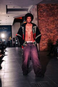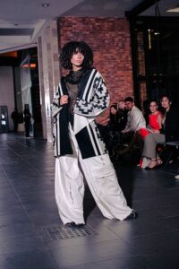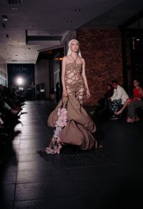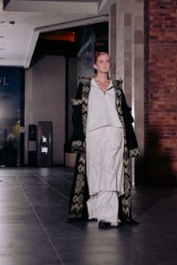 Uma coleção visceral que explora a dualidade entre o humano e o animal. Com têxteis que evocam liberdade e repressão, e acessórios 3D de alto impacto visual, transformando sua coleção em um canal de expressão emocional. Foi utilizado o tecido Gaviota Black BW.