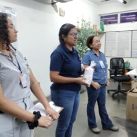 Em São Paulo, Maracanaú e Natal, já começou a entrega do kit sustentável, composto por um copo e uma caneca de fibra de arroz. Esse material sustentável é biodegradável e possui vida longa, durando por anos. Ou seja, o funcionário pode usá-los no seu espaço de trabalho no dia a dia, fazendo a higienização necessária, e os itens vão durar por muito tempo.