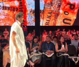 Outro momento importante para a Vicunha foi o desfile da marca autoral Açude, da estilista Ana Beatriz. Ela apresentou um desfile que traduz em criação os segmentos de algodão, redes, têxtil, couros e calçados, revelando como a moda dialoga diretamente com a força da indústria.
