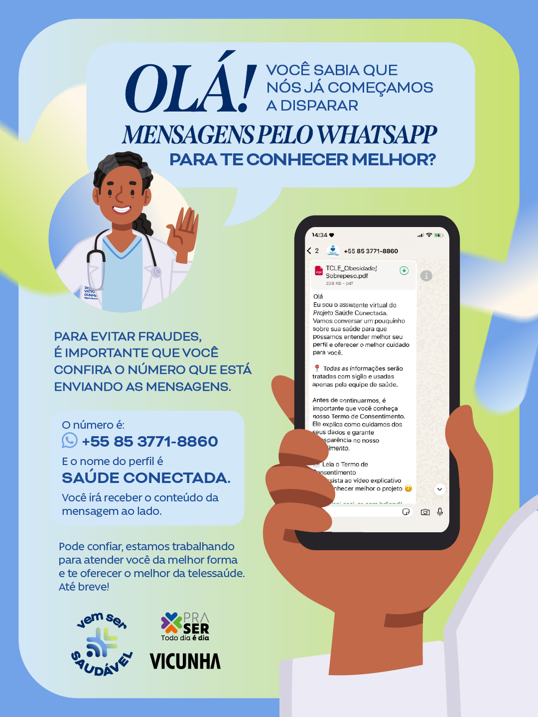 📲Nosso time do Vem Ser Saudável já começou a entrar em contato com os funcionários através do número de WhatsApp +55 85 3771-8860. O nome do perfil é Saúde Conectada.